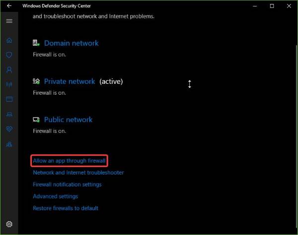 - Klicka på Tillåt en app genom brandväggen.