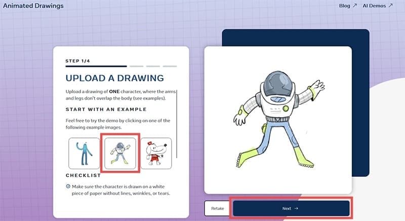 Stegen nedan visar hur allt detta fungerar på Animated Drawings, ett gratis att använda verktyg från Meta (företaget bakom Facebook och Instagram).