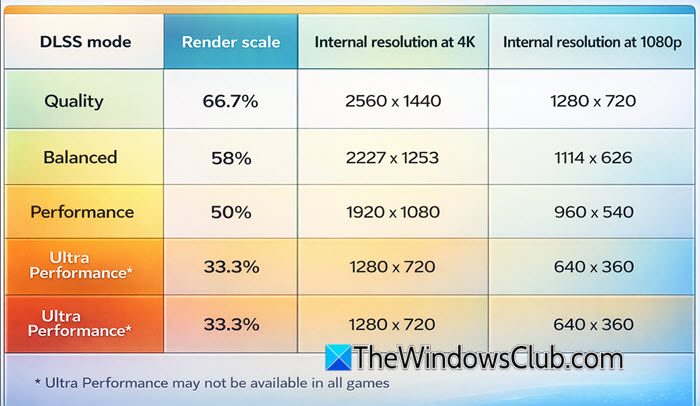 • Prestandaläge (50 % renderingsskala): Vid 4K: internt 1920×1080; vid 1080p: intern 960×540. Det här läget är bäst för konkurrenskraftigt spel och höga bildfrekvenser.
